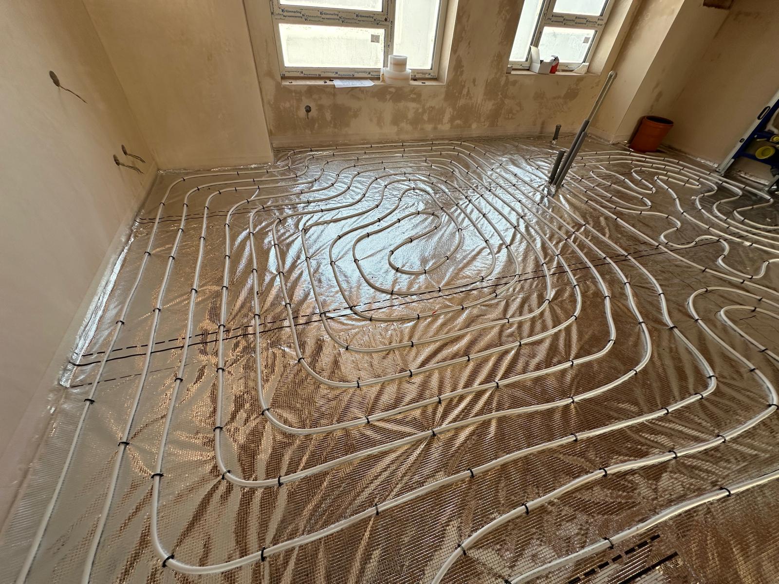 Hotové podlahové topení na domě 11
