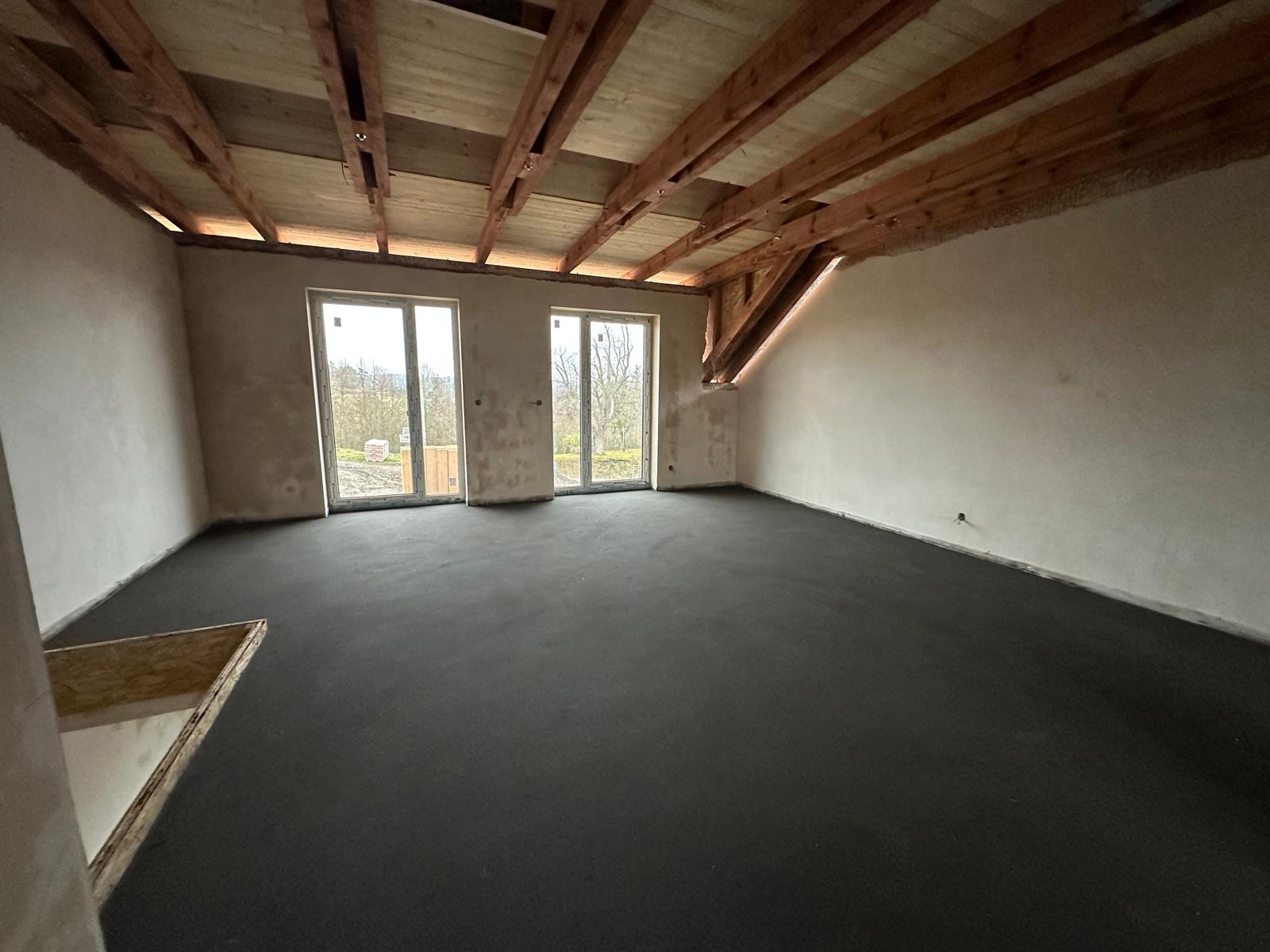Hotové betonové podlahy na domech 1 a 2