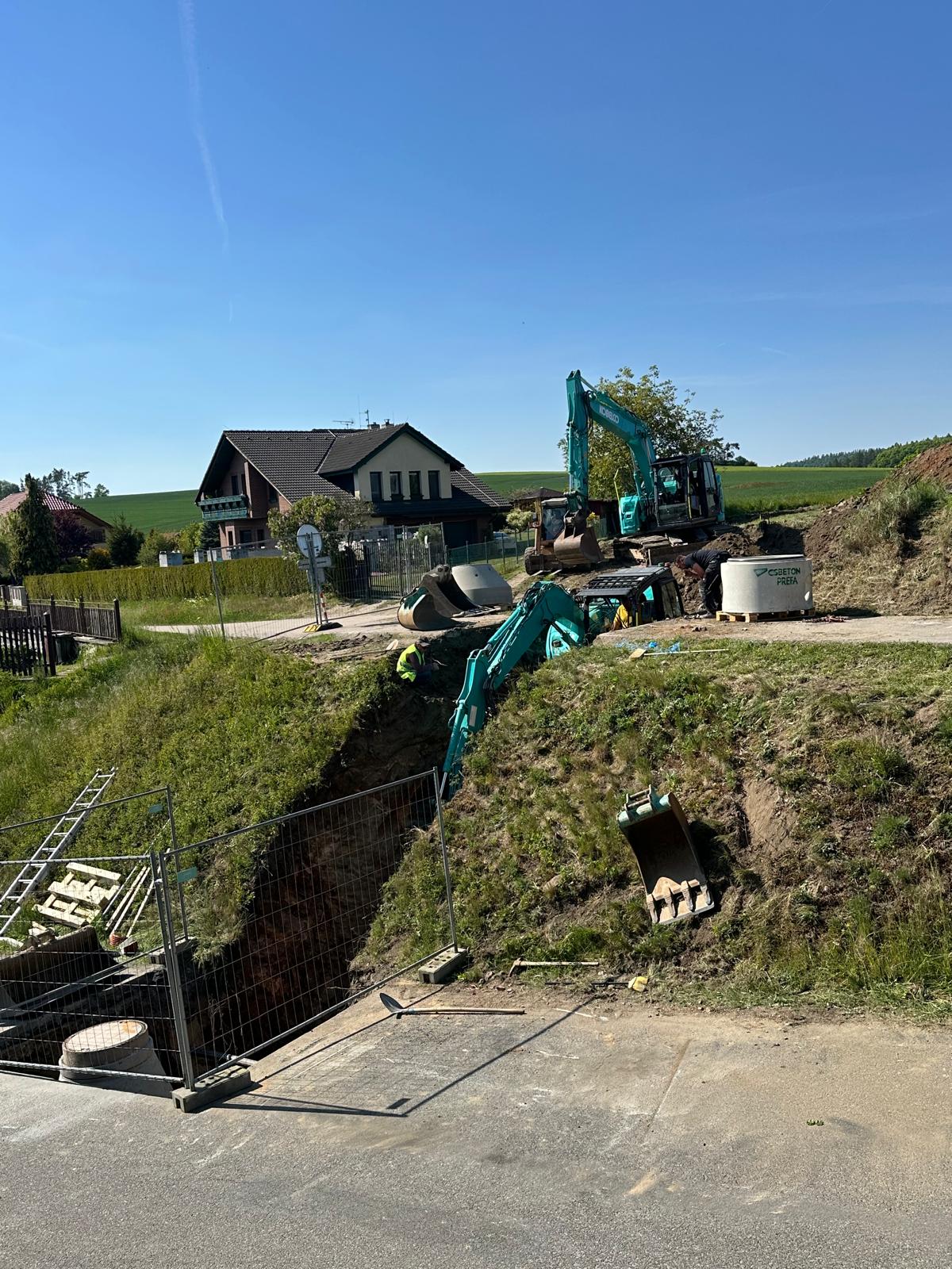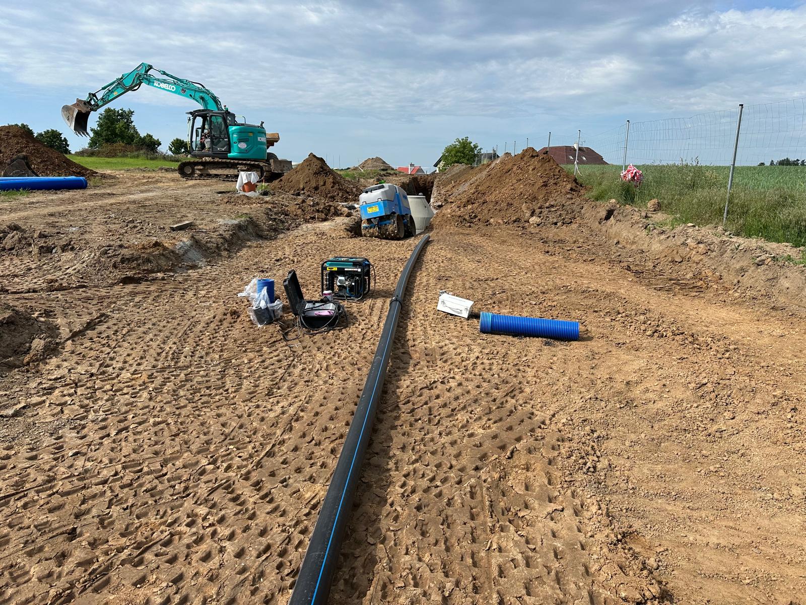 Dokončeny inženýrské sítě – vodovod a kanalizace pro celou lokalitu.
